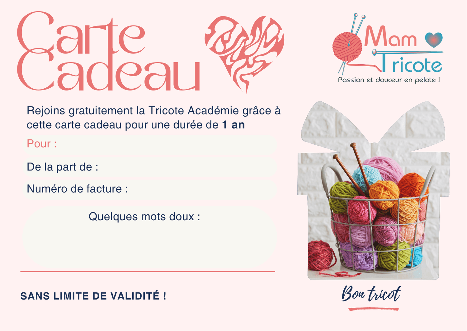 Offrir 1 an de Tricote Académie