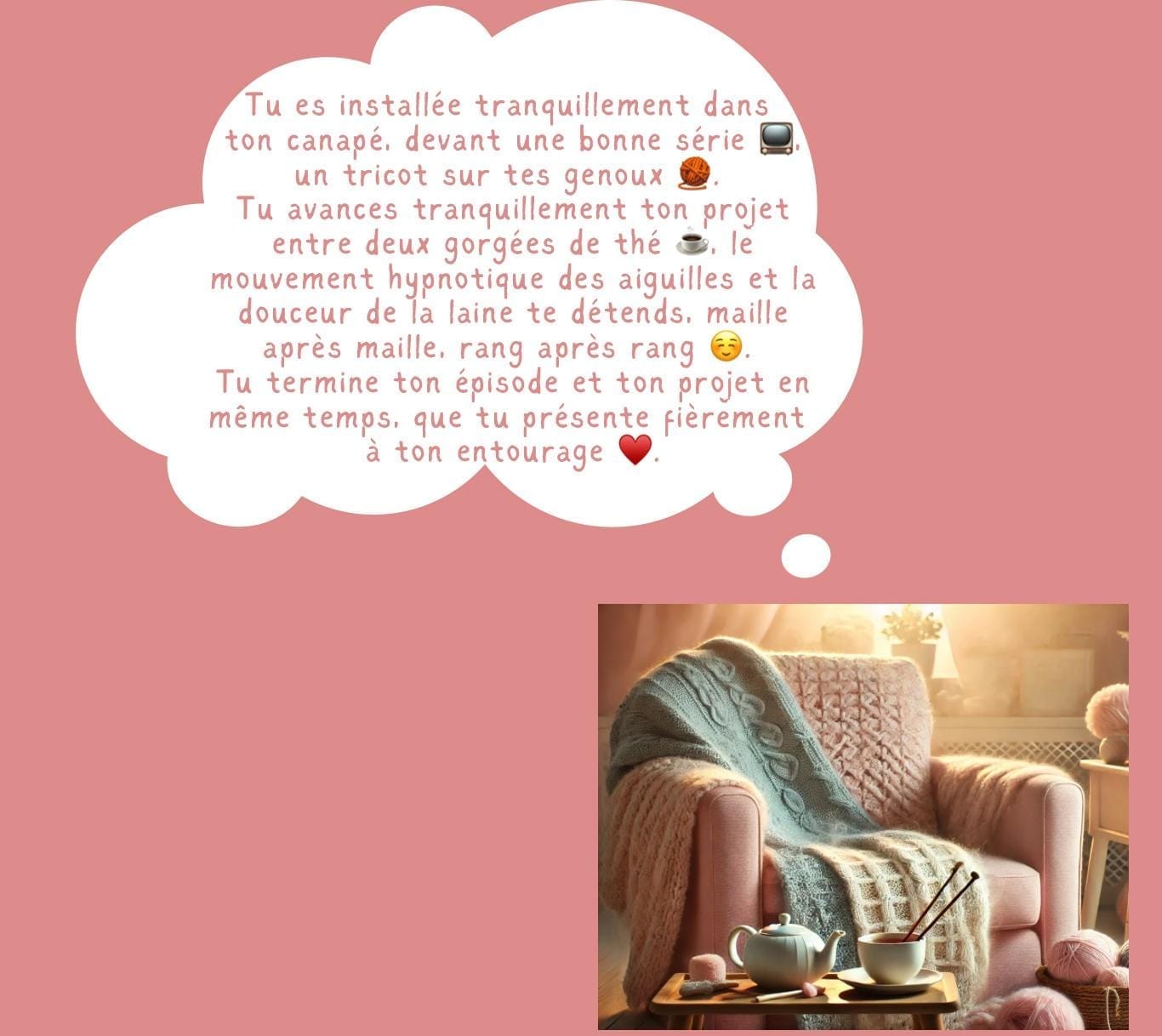 💆♀️ Tricoter aide à relâcher la tension et favorise la production de dopamine et de sérotonine (les hormones du bien-être).